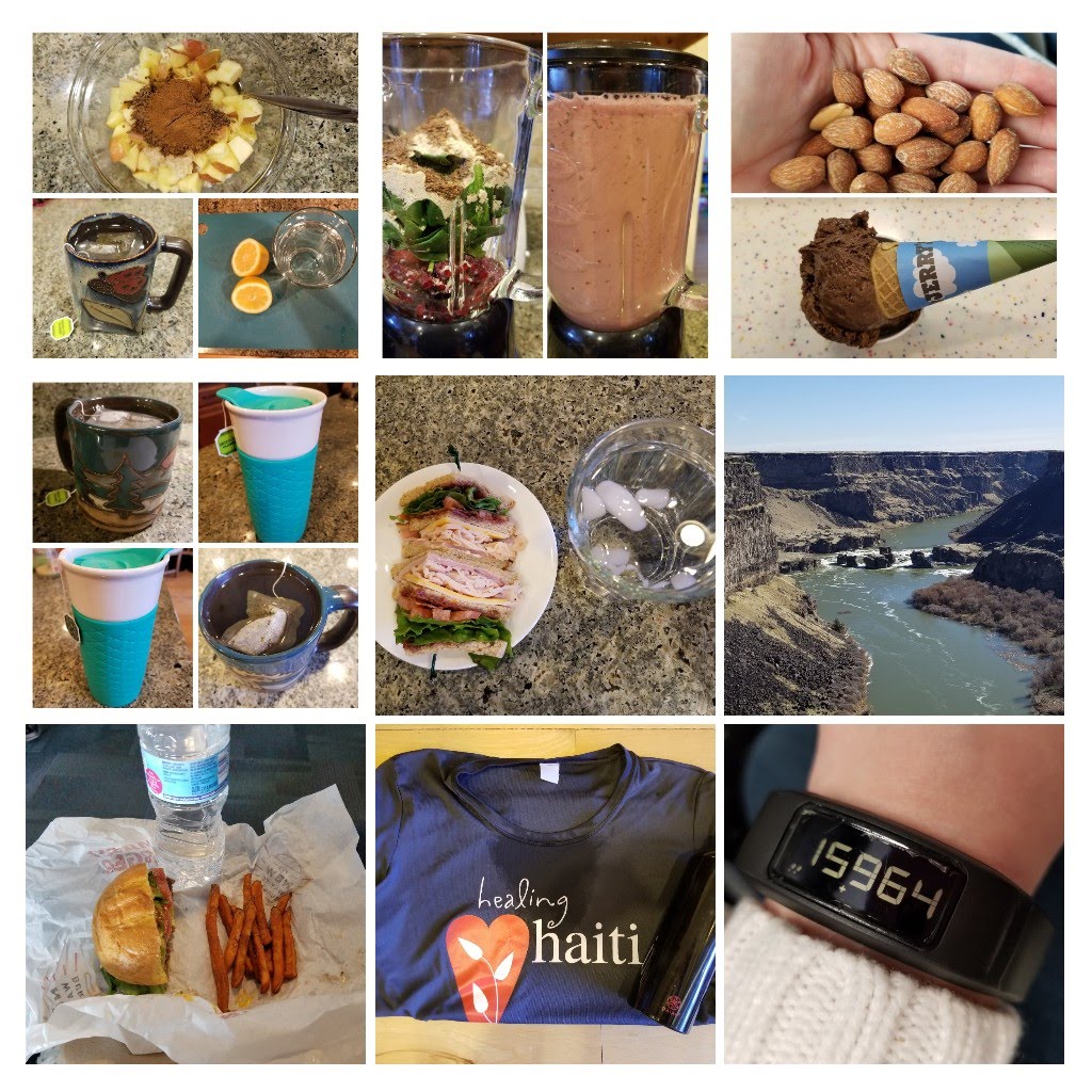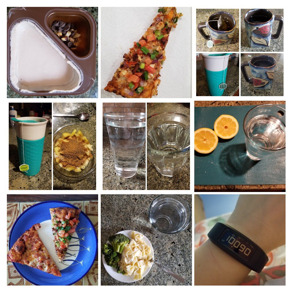7:30 Apple cinnamon oatmeal, lemon water, green tea