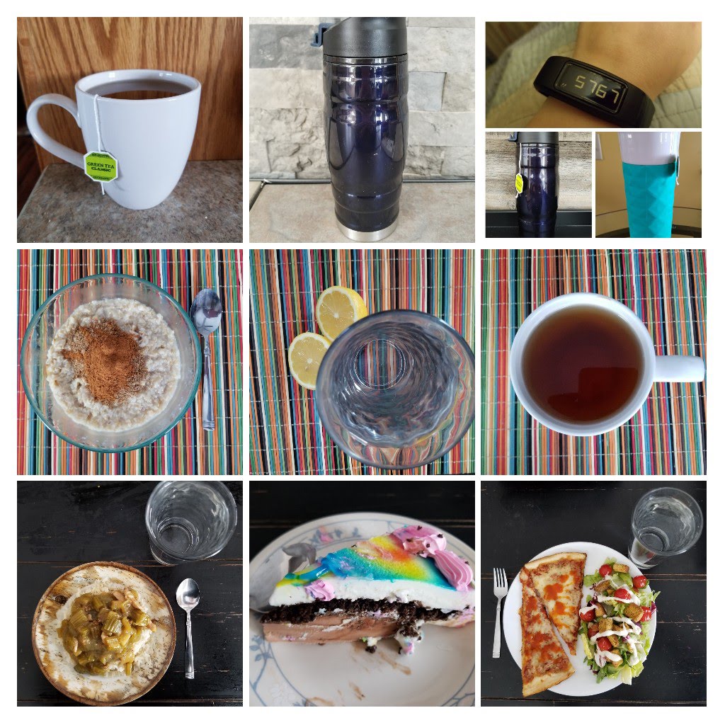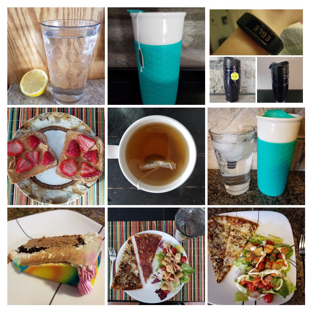 6:45 2 slices pizza with hot sauce, cherry tomatoes, glass of water