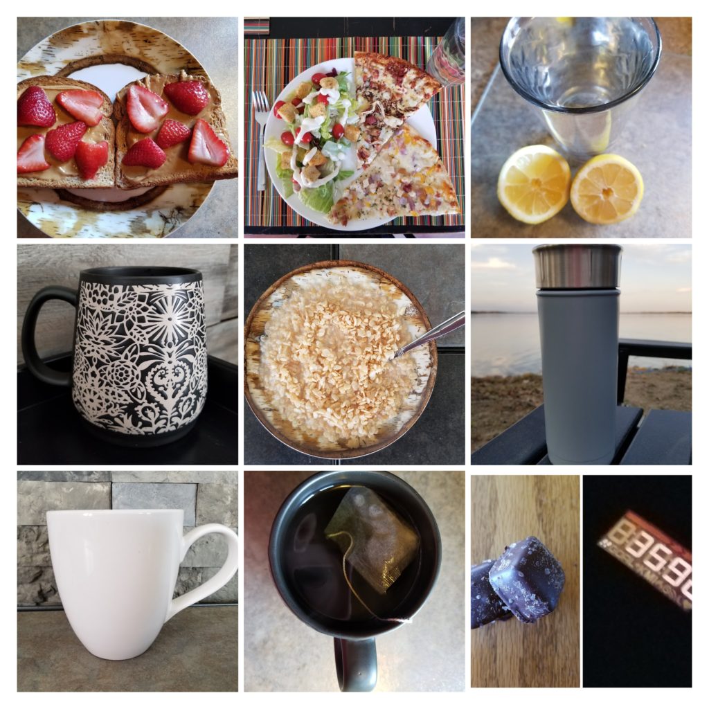 8:15 Peanut butter toast with strawberries, Lemon water and green tea