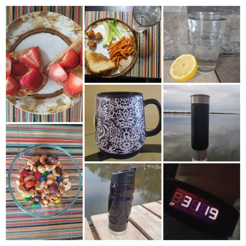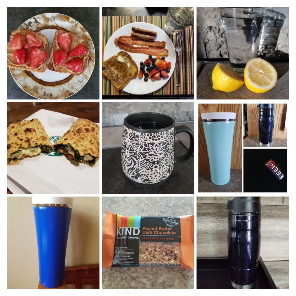 5:30 Lemon water, green tea, peanut butter toast with strawberries